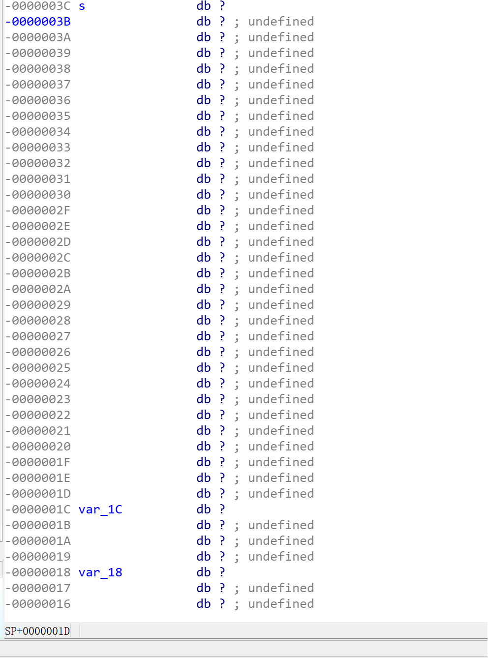 查看s的偏移量: