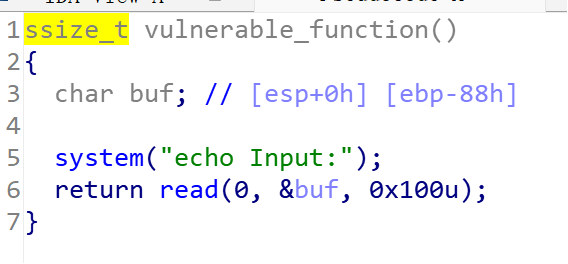 发现明显栈溢出。但发现system函数调用和/bin/sh是分隔的。于是要把它们连接。
